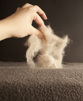 To remove cat and dog hair, put on a wet, rubber dishwashing glove and wipe your hand over the surface. The hair sticks to the glove and removes it from the surface.